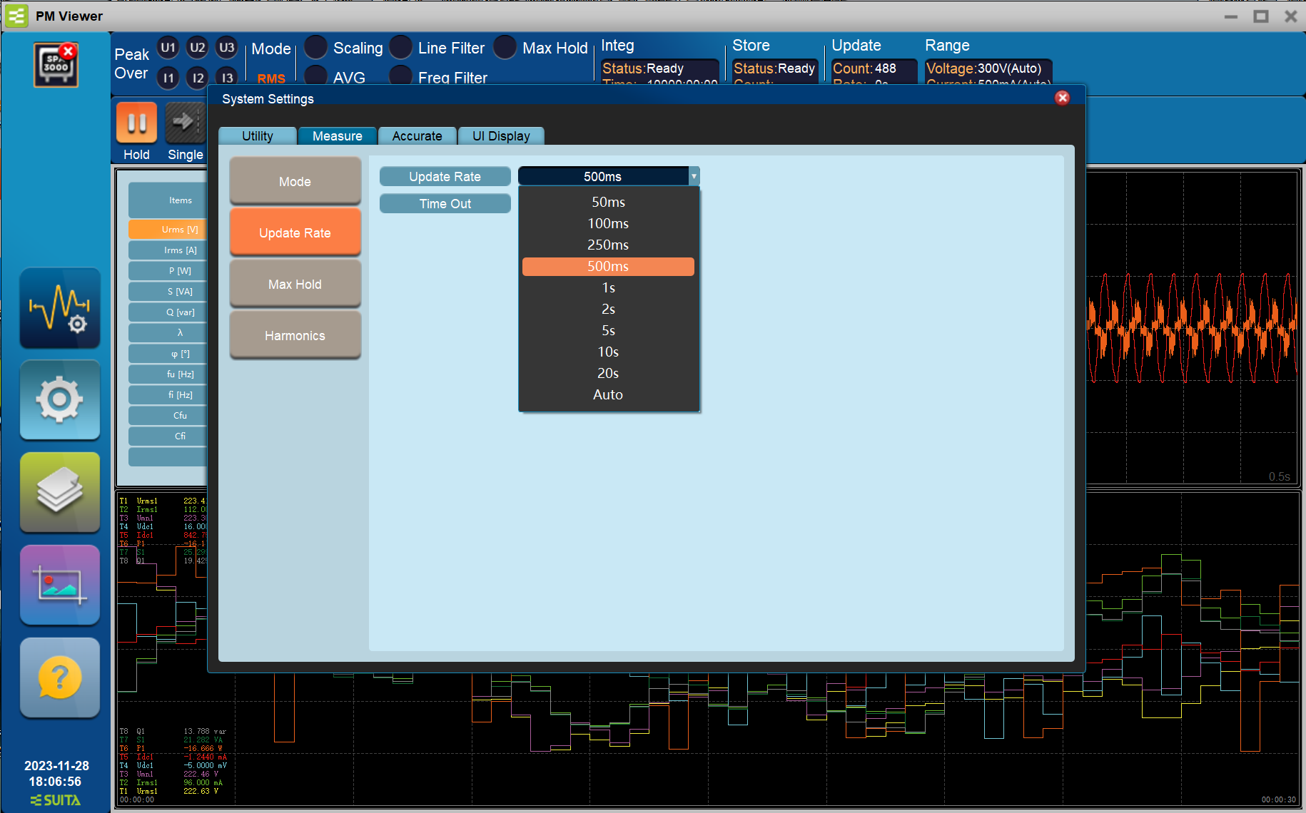 拥有快速显示功能,并且数据更新率最快可达50m5,可以绪短用户测试程序的时间。开启自动更新率模式,可追踪从0.1Hz开始变化的频率信号,根据输入信号的频率自动改变数据更新率,便于对频率变化的信号进行更精准的测量。