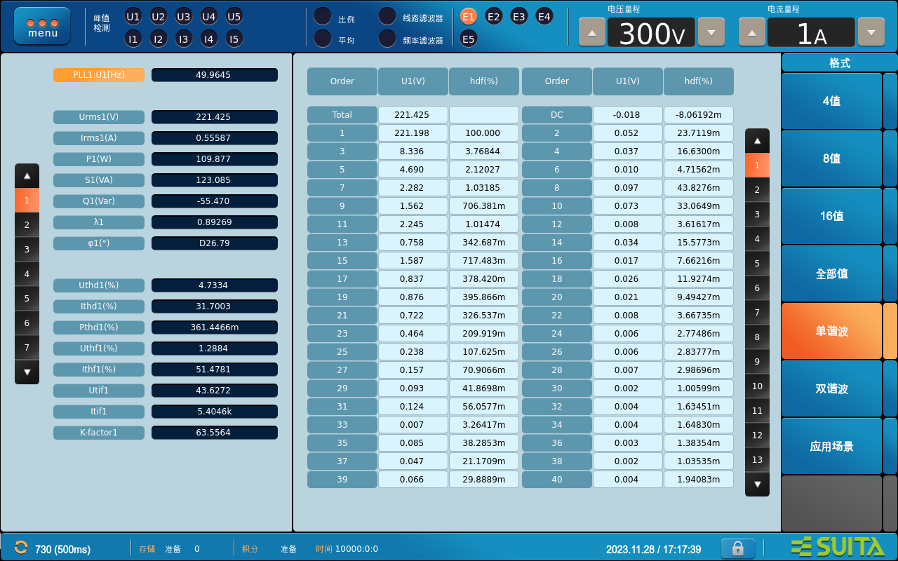 可同时对所有7个功率通道进行谐波分析测量,并且可以选择不同的PLL源,大大提高了在变频电机、机器人、照明等领域的谐波测量效率。测量的谐波次数最多可达500次。
