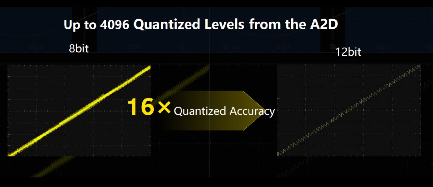 12bit垂直分辨率4096级量化,16倍于8bit的量化级别,小信号测试得心应手。