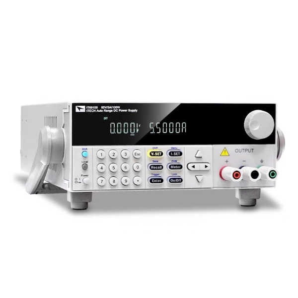 IT69000 系列是单输出可编程直流电源供应器。本系列可编程直流电源可在固定的功率下实现多种电压和电流的组合输出,单台电源即可满足高电压低电流或是高电流低电压两种待测物的测试, 极大节约您的成本和空间。以 IT69100 (60V/5A/100W)为例,可实现 60V/1.66A/100W、50V/2A/100W、20V/5A/100W等多种组合。 IT69000 系列电源还配有标准的 RS232/USB/GPIB 通讯接口,兼具桌上型和系统型的特性,广泛应用于 DC-DC 电源模块、电池充电及传感器等多种测试领域。
